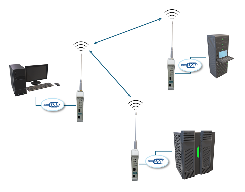 This configuration is a variant of the previous configuration where data is streamed across through to the remote USB port instead of the RS485.